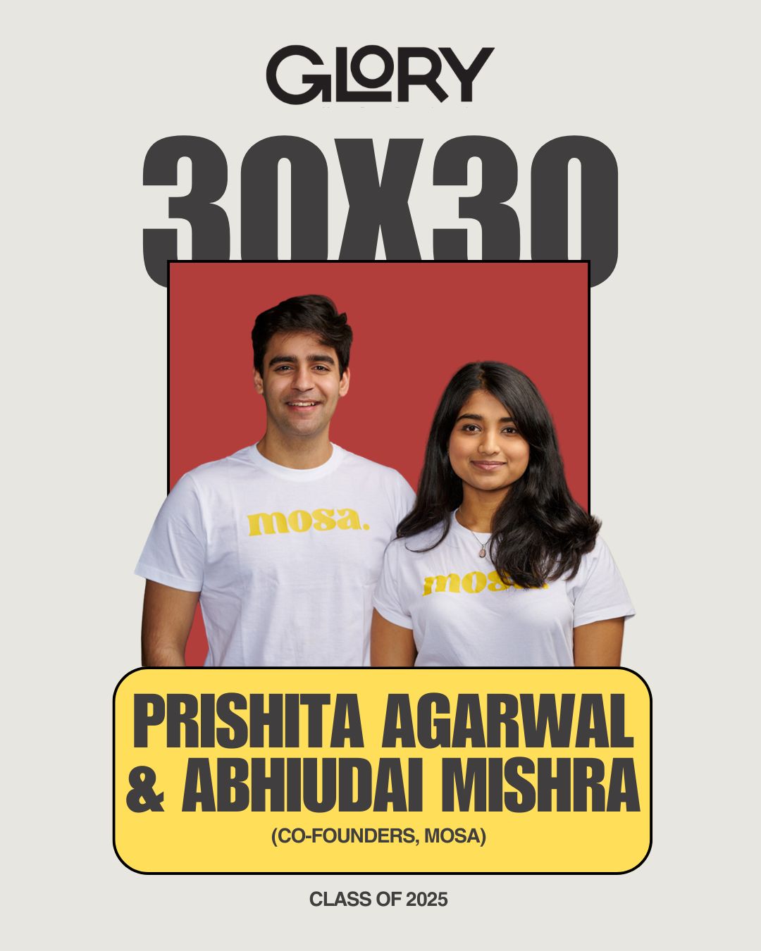 Mosa’s co-founders, Prishita Agarwal and Abhiudai Mishra, were featured inGLORY 30X30: Class of 2025, recognizing Canada’s next generation of impact-driven innovators.