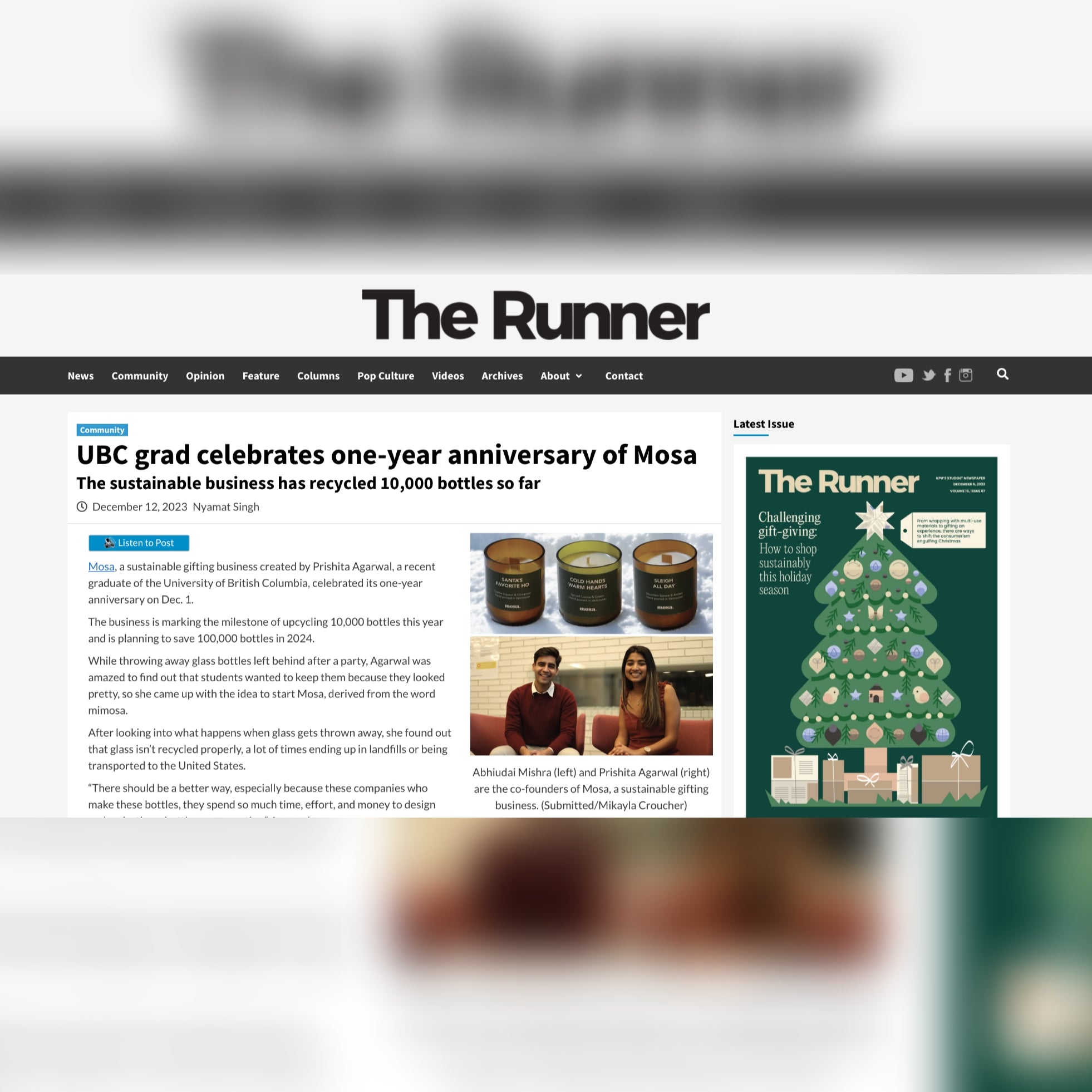 Read about our journey in our first year of launching Mosa on Kwantlen Polytechnic University student magazine, The Runner.