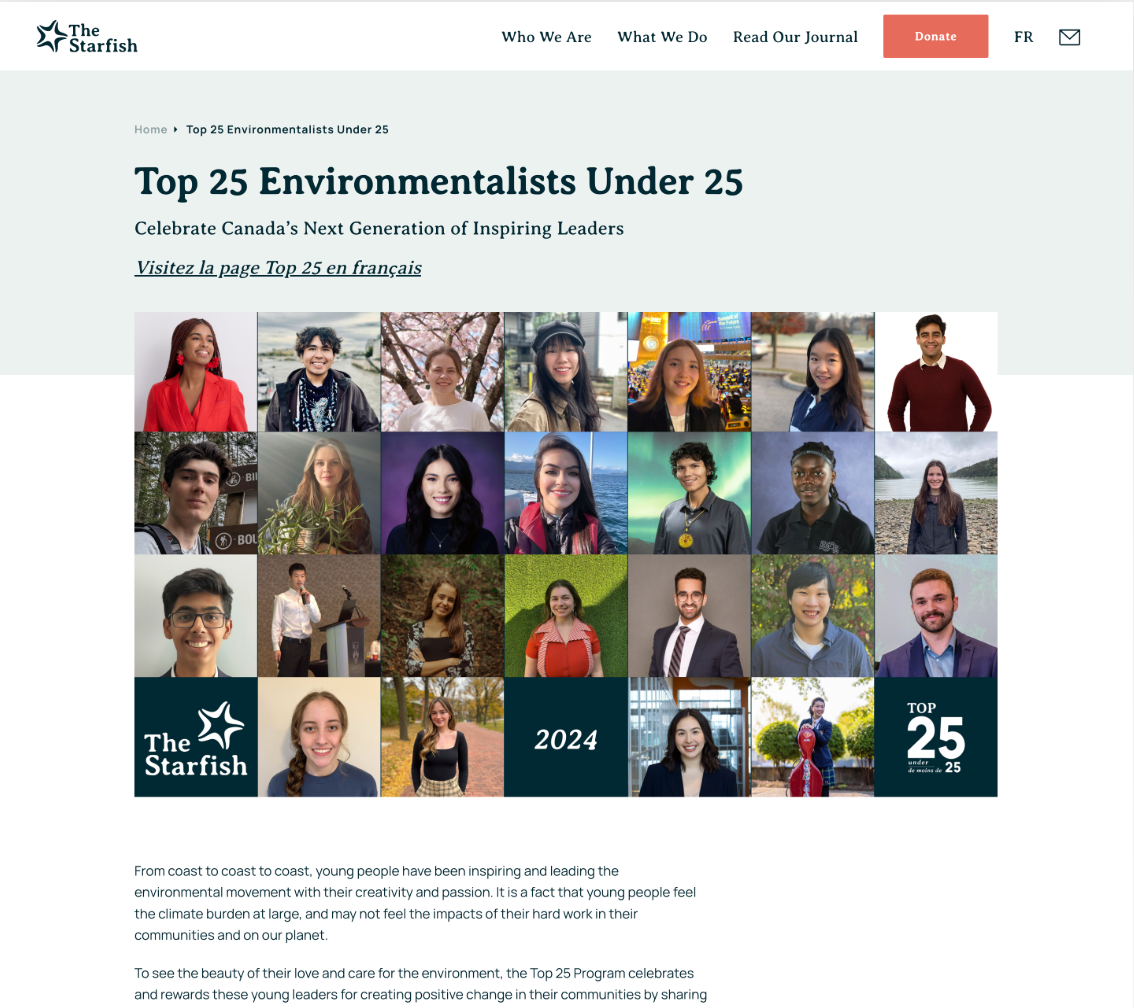 One of our co-founders, Abhi, was named among the Top 25 Environmentalists Under 25 in 2024 by The Starfish.